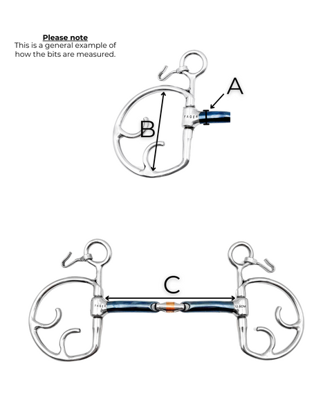 If you are unsure of what size of bit to purchase for your horse, we recommend measuring an existing bit which correctly fits the horse.