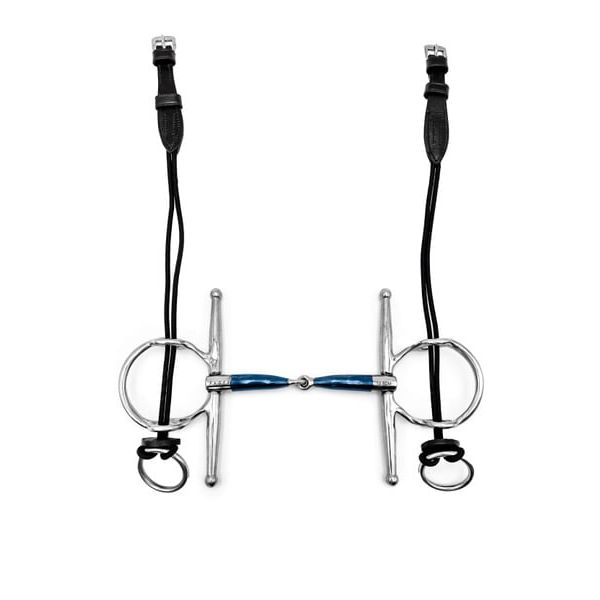 Sweet iron is a covering on top of a bit made of stainless steel. The purpose is to disguise the metal taste from stainless steel and create a pleasant, sweet taste, encouraging the horse to seek more contact and hold on to the bit. Following use, sweet iron will start to oxidize and turn brownish grey, which means that the bit will start to rust but this is to be expected. The more the sweet iron oxidizes, more ‘sweet’ taste will be released. When this happens the ‘blue’ will almost disappear.